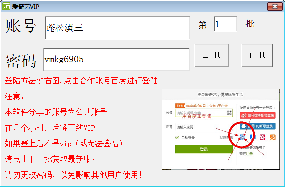 点击4个中的任意一个,如:爱奇艺vip,会出现一个共享账号,在爱奇艺用户登录里使用合作账号登录即可,然后就可以观看爱奇艺所有VIP视频啦。
