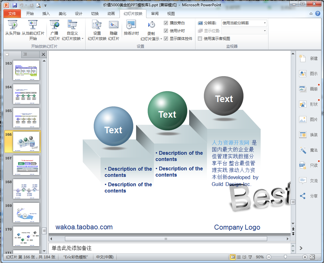 这是一款号称价值5000美元的欧美ppt模板,我看了半天也没看懂好处在哪里,我也是从淘宝上花了10块钱买的,除了模板页面多一点,好像真的没有其它值钱的,不过还算是比较有条理,规类非常明细,难道这就是它的特点?不管了先分享给大家吧,另外再罗嗦一句,这个幻灯片总共有170多张!
