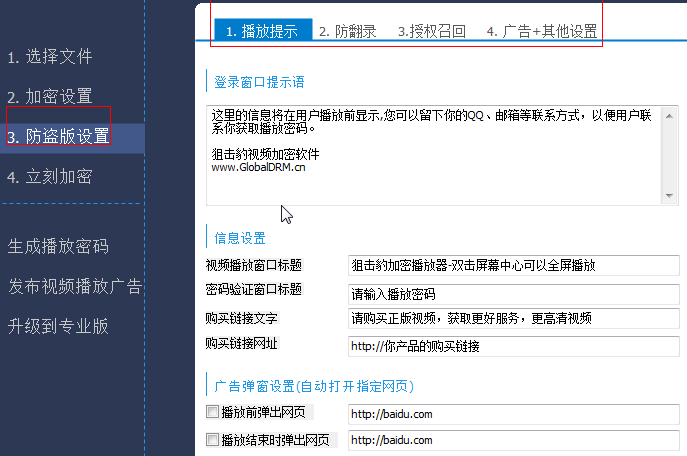 3、防盗版设置