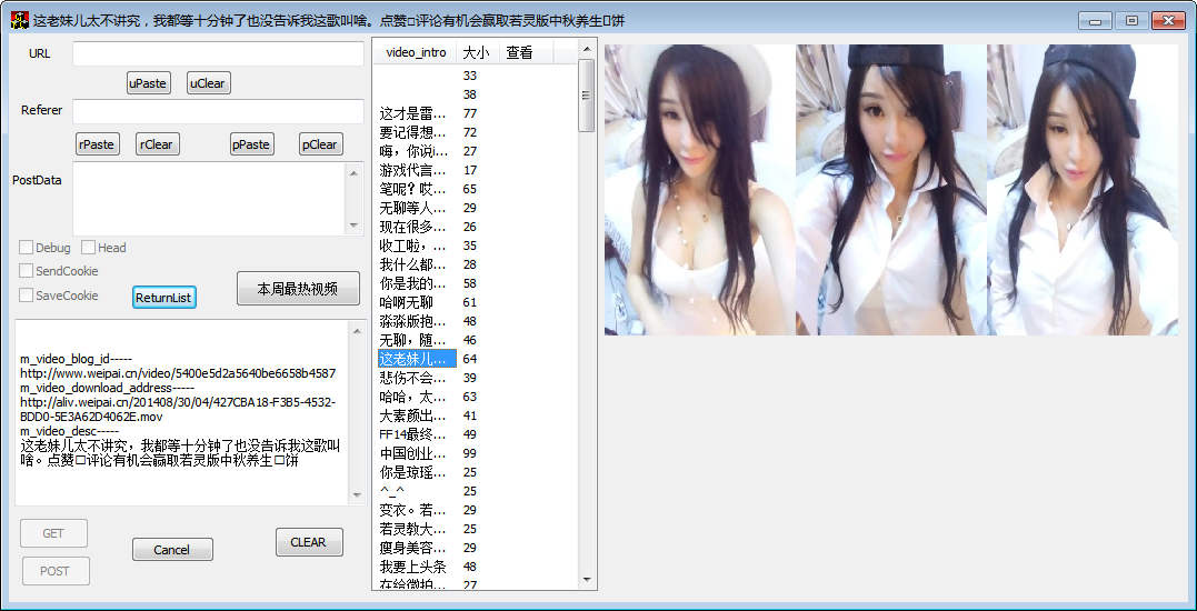 微拍小工具(微拍视频下载器)是一款绿色免费的专门提取下载微拍视频的软件。软件功能强大,能够获取到本周最热门视频,并且获取到微拍热门视频的下载地址,用户可以免费进行下载。