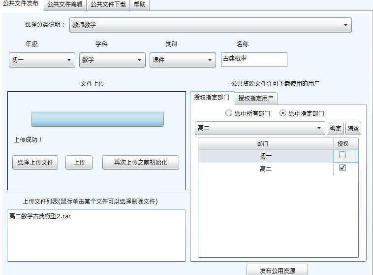 4、文件发布、编辑和下载任何人都可以发布文件资源,授权哪些部门、哪些用户可以下载使用。即使超级管理员、管理员,如果没有获得某个文件资源的下载授权,在审核和下载环节均不能下载,从而保证了文件资源的绝对安全。建议每个部门至少设置一个管理员。