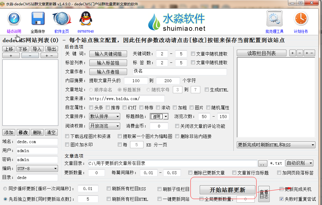 水淼dedeCMS站群文章更新器使用方法