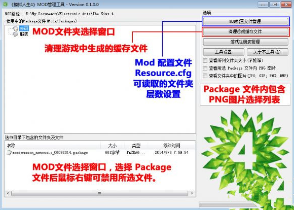 模拟人生4 MOD多目录读取工具;原版游戏默认仅能读取Mods目录及下.package格式MOD。现对Resource.cfg文件的读取路径进行扩增,使其支持多级子目录,最深达9级。这样可以新建人物、化妆、家具、剧场等文件夹更加方便得对MOD进行管理,喜欢的玩家千万不要错过。
