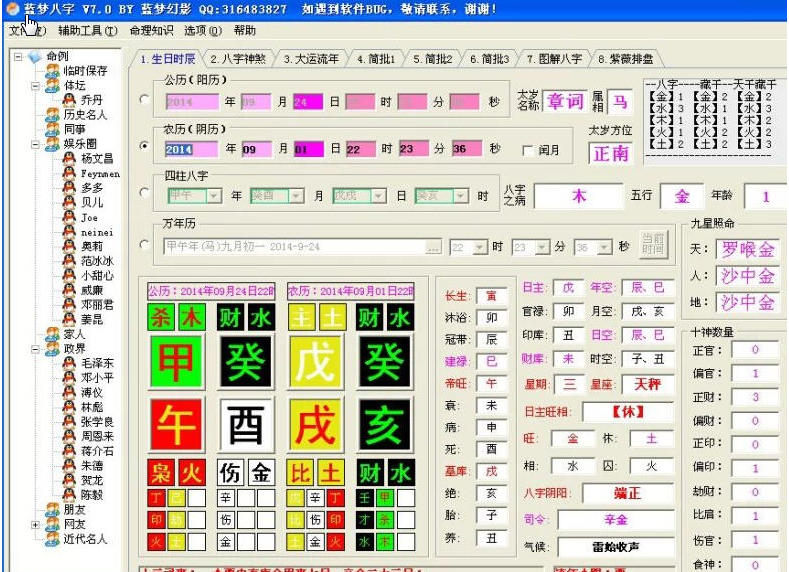 14、增加了了八字五行、十神、阴阳的图解功能。