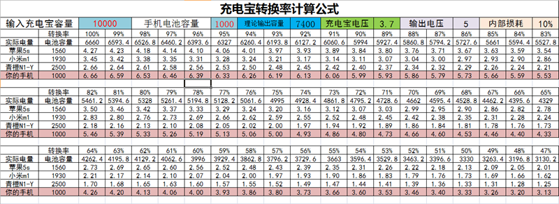 打开Excel表格后,输入你的充电宝容量和手机电池容量就可以计算,还有一些机型可以作为对比。