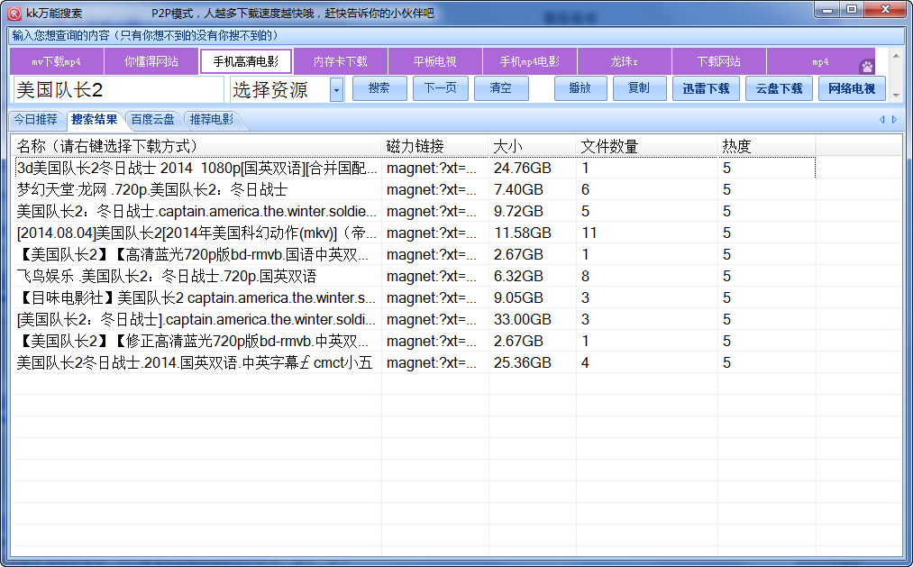 KK万能搜索是一款专业的手机电影下载器,这款软件是一知名的手机电影网站提供的专用电影资源搜索器,这款软件借助先进的P2SP技术,实现了完全免费的3GP、MP4格式手机、MP4电影下载。