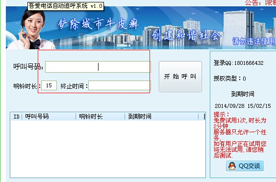 我们总是有需要联系的人,可是如果总是打不通心里肯定不爽,这时就使用吾爱电话自动追呼系统之后,只要他的电池还有电的情况下,就能一直打下去,这样完全不产生费用,也可以用它来进行发短信聊天!是个省电话费的软件!