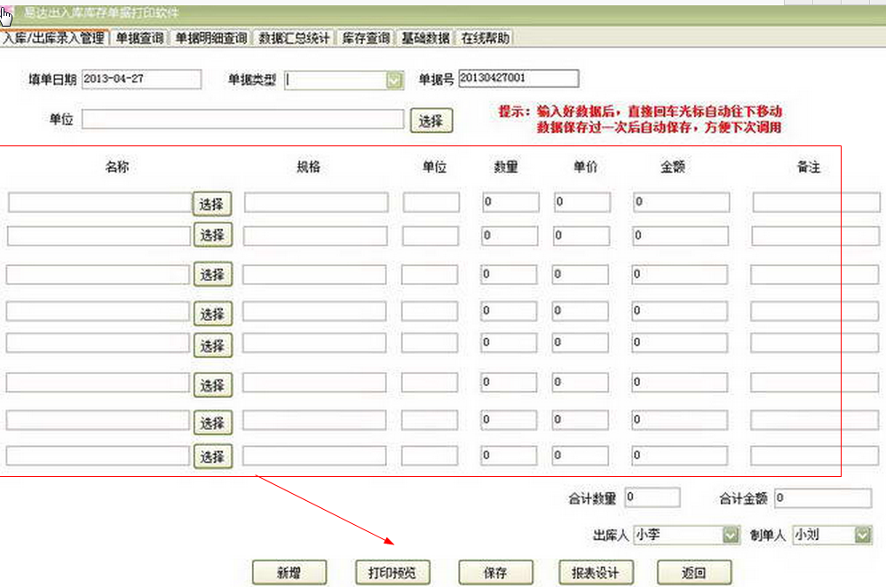 易达出入库库存单据打印是款入库单打印软件,它的不同之处就在于只要经过它输入的信息,就会自动的进行保存,它而且还能对收据进行修改,保存等很多的不一样的操作,关键是现在很多打印机都适合这个系统!