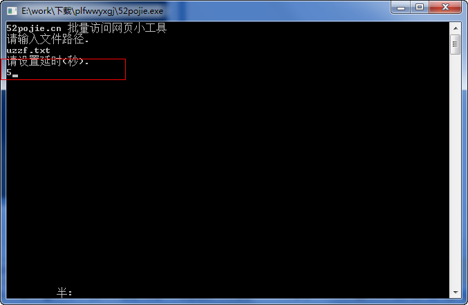2、回车,输入网址打开的间隔,单位为秒,比如“5”;