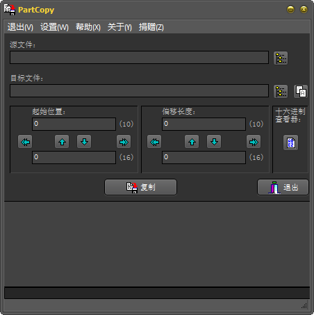 PartCopy 是一个特殊的拷贝软件,它可以将任意数量的字节内容从文件(任意格式)中复制出来,保存为另一个文件,可设置文件的复制长度(起始位置和偏移量长度)。例如,你想从任意文件内的某个位置复制出声音、图像、视频或一段代码等。