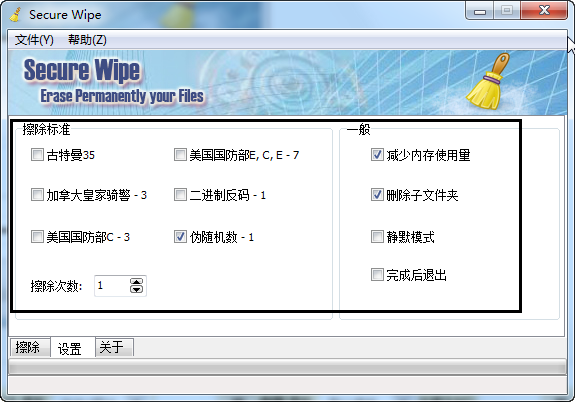 SecureWipe是一个为了数据安全而擦除文件数据的工具,别人恢复不了,适合机密文件的保护。