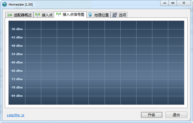 Homedale是一个绿色免费的无线网络信号强度检测工具,允许您搜索wi- fi/WLAN接入点并监视它们的信号强度。查看所有可用的接入点信号强度,加密(WEP、WPA/WPA2)速度和通道。你也可以监控选择接入点的信号强度在图的时间。