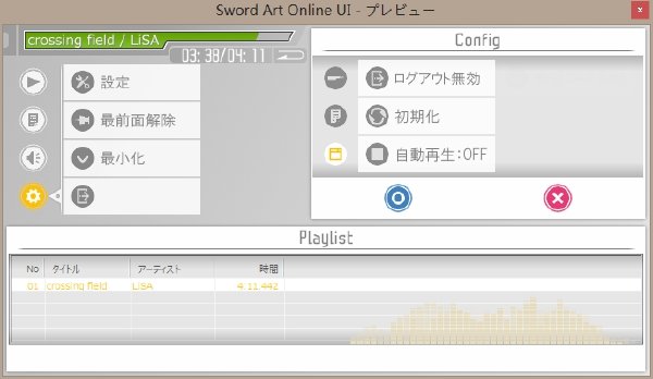 在以萌为主的日本 这款音乐播放器也便是其代表。各种类型的动漫萌化皮肤数不胜数在下便不一一列举了在此我推荐的这款为动漫刀神剑域的皮肤定制版,可以直接将MP3或者MP4文件托入播放。
