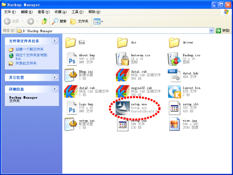 点击打开 Backup Manager 文件夹,找到“setup.exe”文件,鼠标双击进行安装。