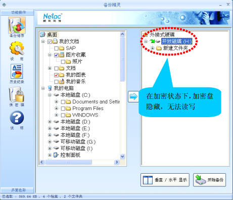 朗科备份精灵(Backup Manager)是一款专业的文件备份及管理软件,它的主要功能是将您电脑主机中的文件备份至随附的外接式硬盘。相较于传统的档案管理员或其它备份软件,Backup Manager可于单一页面同时选取多个来源文件夹,一次完成备份工作,并且在备份完成后交叉比对来源及终端文件夹,以确认备份的完整性。