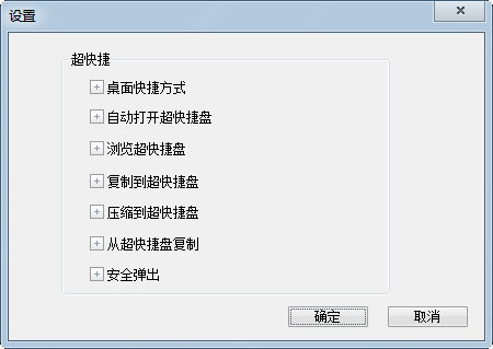 超快捷功能包括:桌面快捷方式,自动打开超快捷盘,浏览超快捷盘,复制到超快捷盘,压缩到超快捷盘,从超快捷盘复制,安全弹出。除“桌面快捷方式”和”自动打开超快捷盘”外,其他功能都将集成在右键菜单,使您的操作更加方便,快捷。