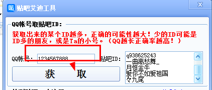 输入想要获取某人贴吧ID的QQ帐号,点击获取,即可获取出你想知道某人的贴吧ID。