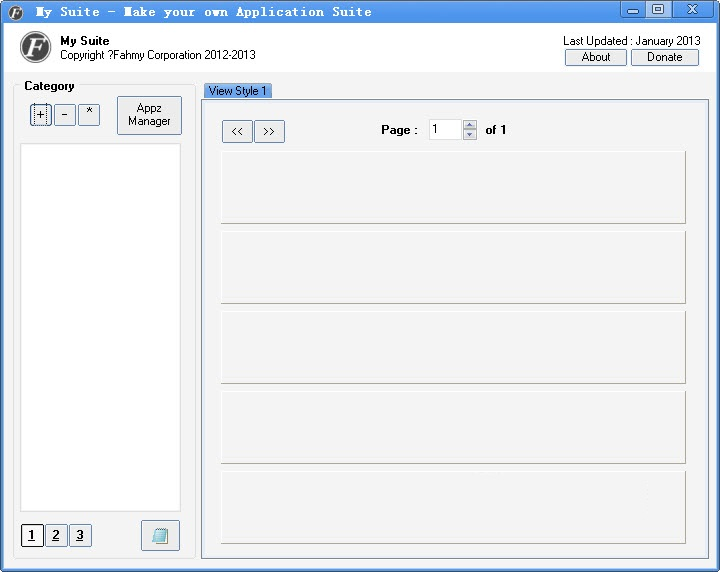 My Suite的界面非常简单,左侧用来创建分类,界面中间则显示放入分类中的软件快捷方式。通常情况下,你只需要使用拖放操作就可以把软件快捷方式添加进去。