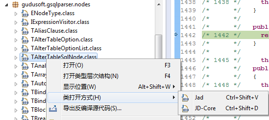 打开项目路径下的Class文件,如果设置类反编译查看器为缺省的查看器,直接双击Class文件即可,如果没有设置为缺省查看器,可以使用右键菜单进行查看。