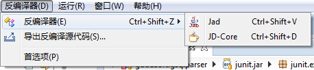 类反编译查看器右键菜单包含了Eclipse自带类查看器右键菜单的全部选项,并增加了一个“导出反编译源代码”菜单项。