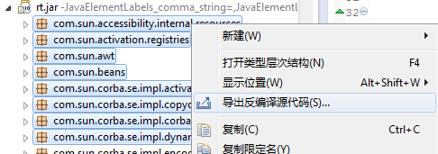 Eclipse Class Decompiler插件也提供了反编译整个Jar文件或者Java包的反编译。该操作支持Package Explorer对包显示布局的操作,如果是平铺模式布局,则导出的源代码不包含子包,如果是层级模式布局,则导出选中的包及其所有的子包。