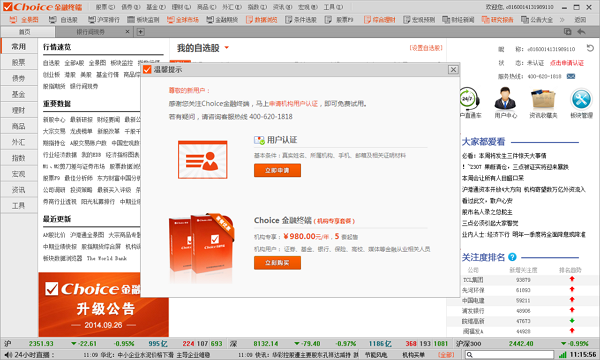 Choice 金融终端是一款面向各类金融投资机构、研究机构和学术机构等不同类型机构用户的互联网大数据金融超级终端。数据涵盖股票、基金、债券、指数、商品、外汇和宏观行业等多项品种数据,7×24小时实时推送各类公告、各类资讯数据和研究报告。