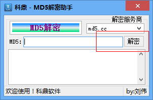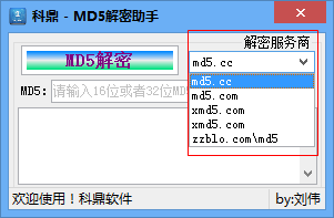 科鼎md5解密助手是一款方便易用的MD5解密软件。该软件操作简单,内置了各种网站的md5数据库来帮助你进行解密,如果数值不是很大的话基本都可以轻松解密出结果。
