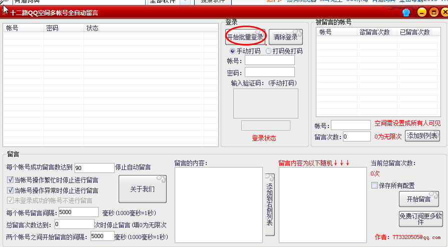 2、新增傻瓜式自动刷留言,周期性自动定时留言,多qq号自动切换留言。
