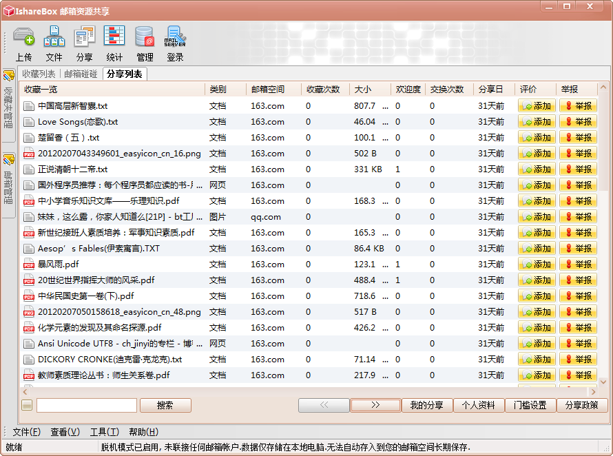 邮箱资源共享器(IshareBox)是一款功能强大的邮箱资源共享管理工具,支持全球各大邮箱,可多端进行储存下载,不受地域限制,随时随地都能管理您的数据空间。需联接身份验证,使用更加安全、高效、稳定,而且储存免费无限制。