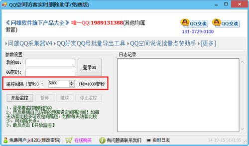 QQ空间访客实时删除助手是一款绿色免费的空间说说评论删除工具,这款工具可以帮助你实时删除QQ空间最近访客的记录,并且可以自定义调节监控速度,实时日志显示,循环不断件监控删除!