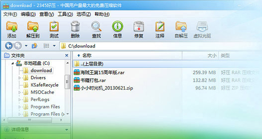 2345好压是款国产最老字号且功能最强大的压缩软件,对于他来说不管什么类型的软件,都能进行压缩,界面很漂亮,操作也十分的简单,关键软件的兼容性能好,在任何电脑系统上都能使用!
