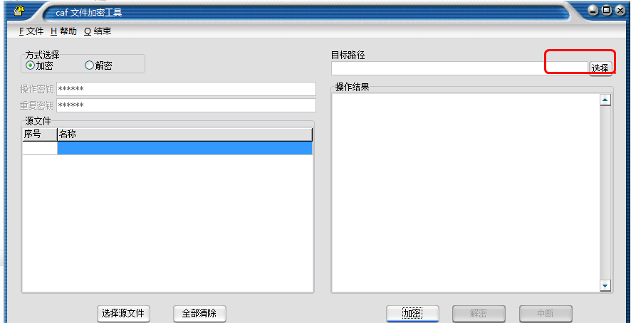 (3)按"目标路径"右边的"选择",选择解密文件的存放位置