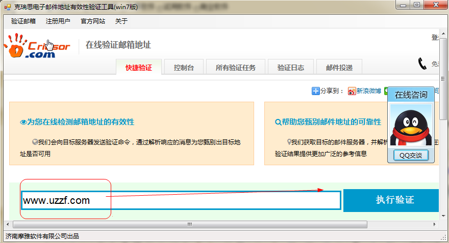 克瑞思电子邮件地址有效性验证工具是款最新的邮箱地址验证软件,通过他来快速的识别包括QQ邮箱、网易邮箱等邮箱地址的正确性,查选出正确的来进行电子营销策略!