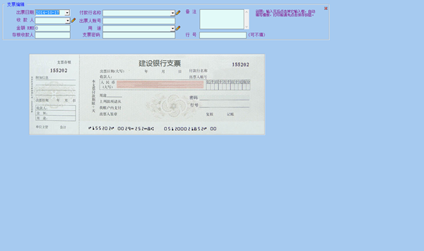6、直接调用支票背景图,直观的软件界面,完全模拟手工操作方式;