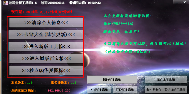对于经常用电脑的小伙伴来说,总是会需要很多电脑基本软件,这时就可以来选择用波哥全新工具箱,里面就包括QQ工具、YY工具、刷钻数程、易语言源码及电脑加速等很多软件,需要的都可以来此下载!