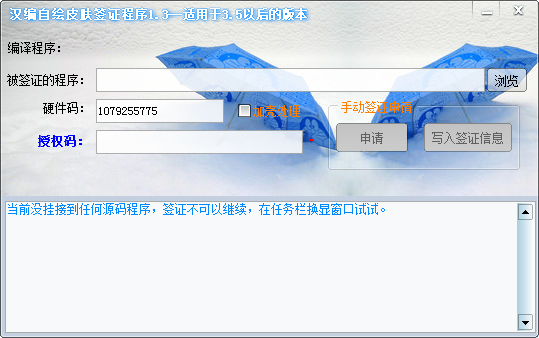 汉编自绘皮肤签证程序(汉编自绘模块破解)今天飘荡软件小编给大家带来汉编自绘皮肤的破解补丁!至于怎么用使用,我简单说一下,首先你编译程序的时候,保证签证程序已经打开,然后点击静态编译就行了。