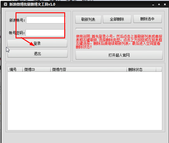 超人新浪微博批量删除博文工具使用方法