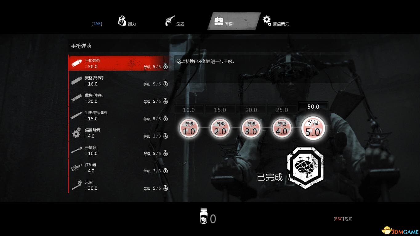 存档内容:游戏总进度 100%;已解锁最高难度;已学习所有技能;获得机关枪、火箭筒、模型等通关奖励;