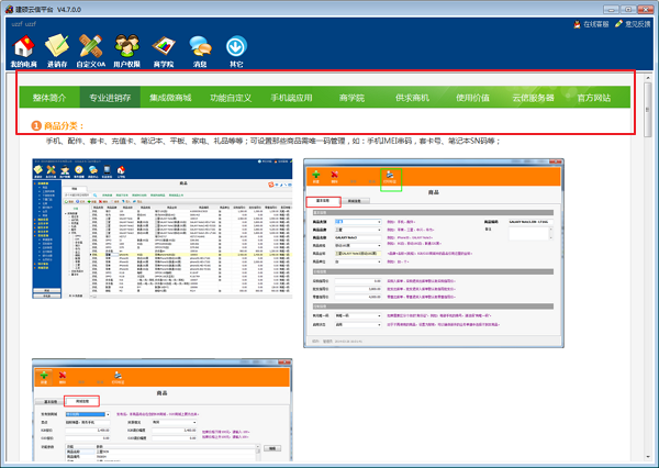 适应性:系统广泛的被用在手机进销存管理、数码进销存、家电进销存、衣服进销存等行业;