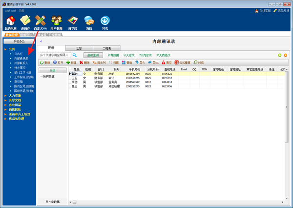 7、用户权限:用来添加新用户,管理各类OA权限等。