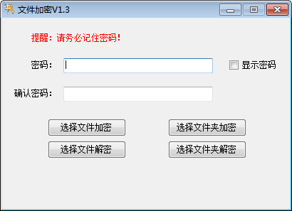 免费文件加密工具,可以加密文件或文件夹,软件小巧,界面设计非常简洁,使用也很简单,加密好帮手。