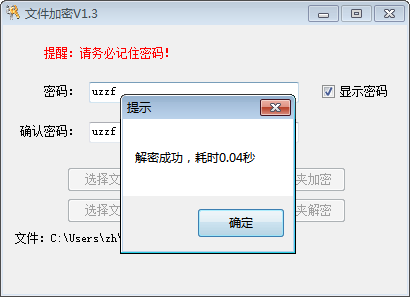5、文件解密:(这是在不关闭程序的情况下操作完成的,关闭程序后重新打开就需要输入密码了)