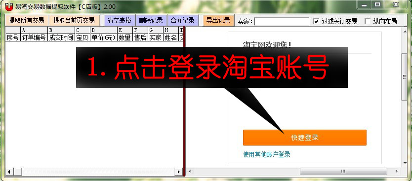易淘交易数据提取软件是一款淘宝店主将其交易记录导出至EXCEL表格的软件,导出的数据,用户可方便地导入快递单/发货单打印系统或进行销售数据分析。
