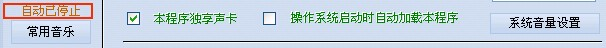 ①、停止系统自动播放:如果前面的方框被选中表示将停止系统的自动播放,如果停止了系统的自动播放,那么你设置的定时播放数据将不会在指定时间播放。系统是否在自动播放中,窗口左上角有提示,如果在自动播放中会显示[自动运行中],如果系统处于停止自动播放状态会显示[自动已停止],见下图: