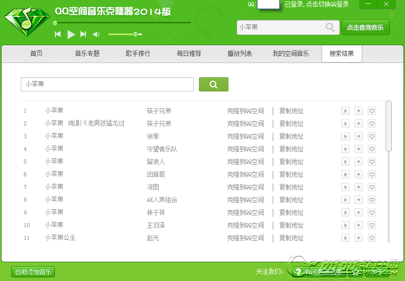 QQ空间音乐克隆能将网上的任意音乐添加到你空间;