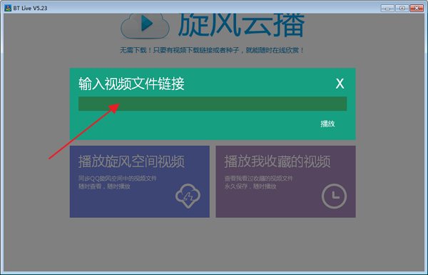 3、点击【输入视频文件链接】,会弹出链接输入框,能够支持HTTP、FTP、ed2k、magnet、thunder链接。
