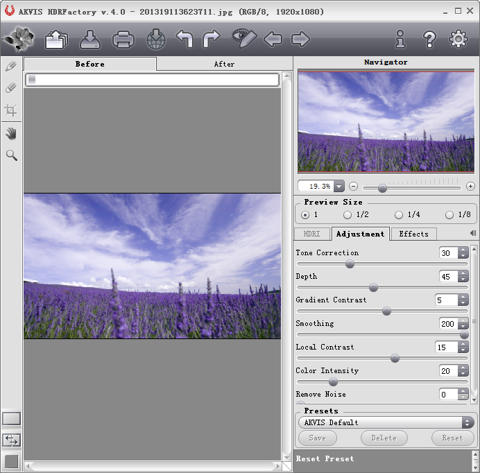 有了AKVIS HDRFactory,只需要一张照片就能获得这种效果,而不必准备多张相同的照片。有了这款综合型工具以及它的默认插件,你可以直接应用各种效果,编辑照片直至你想要的结果,不费吹灰之力便能拥有漂亮的HDR照片。如果你对结果感到满意,还能通过Facebook、Twitter、Flickr、Google Plus等社交网络分享自己的作品。