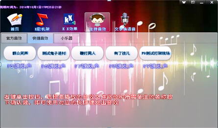 主持音效里面,点击按钮即可播放对应音效,如图11,里面的快捷音效则是试用快捷键播放音效,并且支持自定义音效。如图12