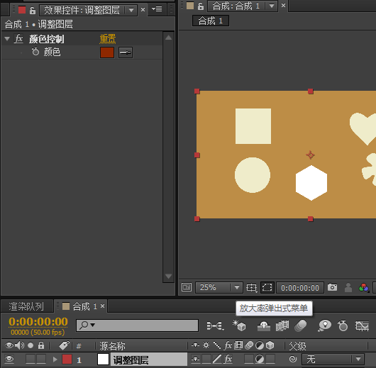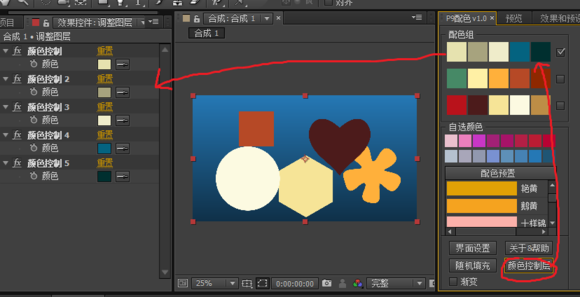 点击按钮,此颜色属性会变成你选中的颜色,要提一下的是,这样会在当前时间做一个颜色数值的关键帧