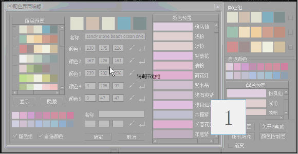 上面一组是整体配色组,下面的自选颜色不成组,这里面每一个有颜色的方块都是按钮,点击可以添加颜色